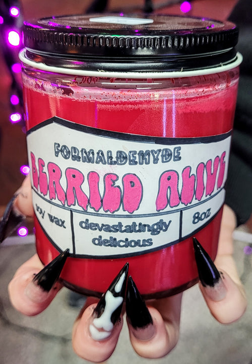 Cozy Casket is scented as gingersnap creme. A VERY cozy, sweet treat smell with notes of sweet, creamy almost toasted coconut and powdered sugar with a very subtle gingersnap scent; it's not a super heavy cake smell, it's a little more light and fluffy. It really is such a cozy, comforting scent!